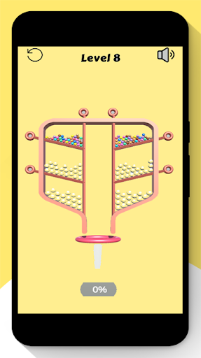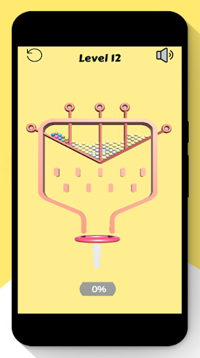 Simple Pull The Pin 2020 uses gravity to pull the ball down towards the channel. All the balls have to go into the pipe ... can you take off the pins in the right order and make it happen?