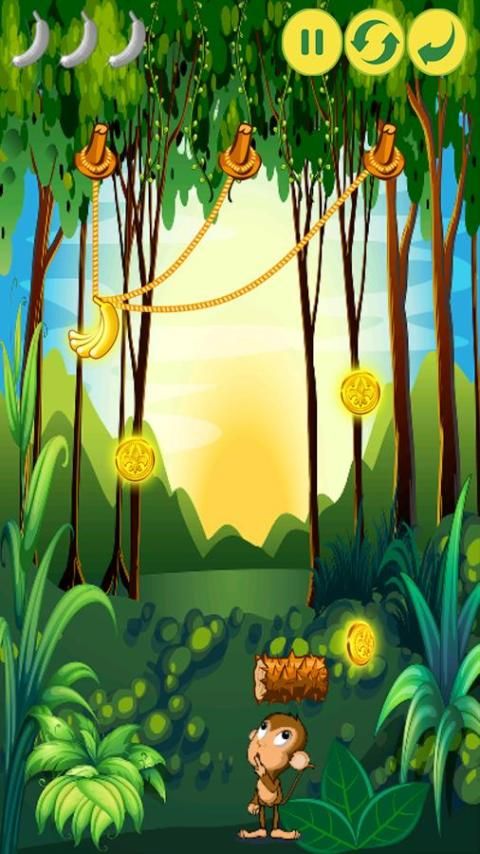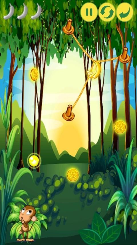 Смарт-обезьяна очень голодна. Таким образом, он ждет вас, чтобы доставить ему бананы, которые вешали на канатах. Но есть много препятствий в пути обезьяны, что даже он, талантливый и очень опытные в скалолазании, кажется, не имеет никаких шансов, чтобы сократить веревки и обойти препятствия.