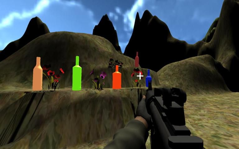 эта игра позволяет целиться и стрелять бутылку и битое стекло.