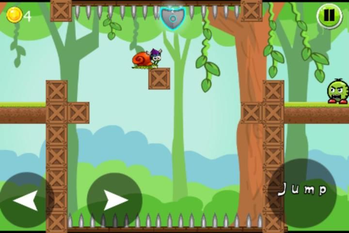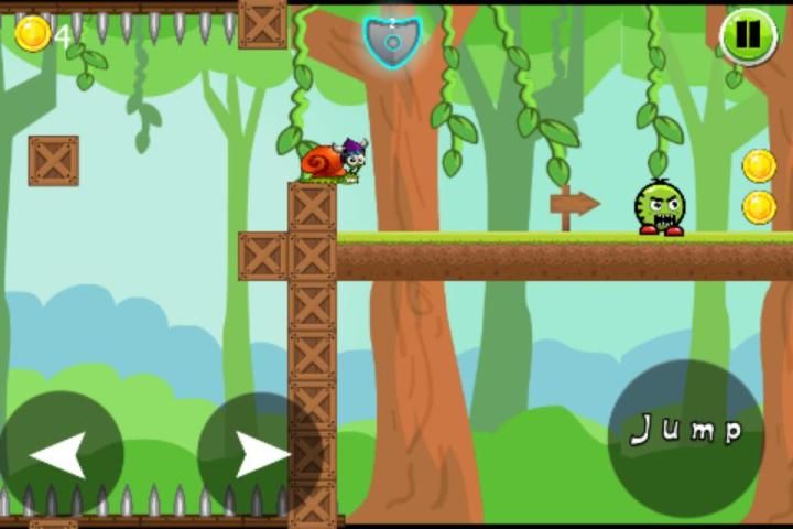 Помощь Улитка Боб дойти до конца игры, собирая монеты и избегая препятствий