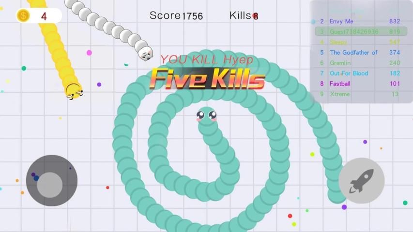 3, убедитесь, чтобы держать голову в безопасности и съесть больше пищи, чтобы получить как можно дольше, убивать других, чтобы получить золото, которое вы можете усилить вашу змею с фантастическими навыками!