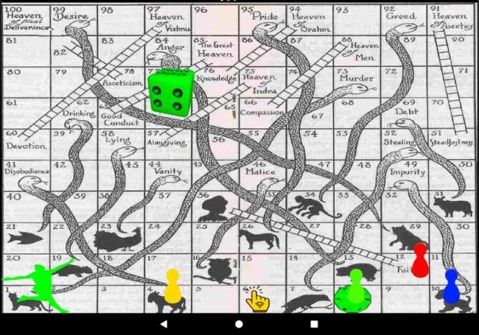 Игра была популярна в древней Индии под названием мокша Patam. Она подчеркнула судьбу, в отличие от таких игр, как Pachisi, которые сосредоточены на жизни как смесь мастерства (свободы воли) и удачи. Игра также интерпретируется и используется в качестве инструмента для обучения влияния добрых дел против плохого. Доска была покрыта символическими образами, вершина отличая бог, ангел и величественные существо, в то время как остальная часть платы была покрыты изображениями животных, цветов и people.The лестниц представлены достоинства, такие как щедрость, вера и смирение, в то время как змеи представлены пороки, такие как похоть, гнев, убийство и воровство. Мораль урок игры в том, что человек может достичь спасения (мокша) через делать добро, в то время как, делая лукавого унаследует перерождение в низших форм жизни. Количество лестниц было меньше, чем количество змей, как напоминание о том, что путь добра гораздо труднее, чем топтать путь грехов. Предположительно, достигнув 100 представлял достижение мокши (духовное освобождение).