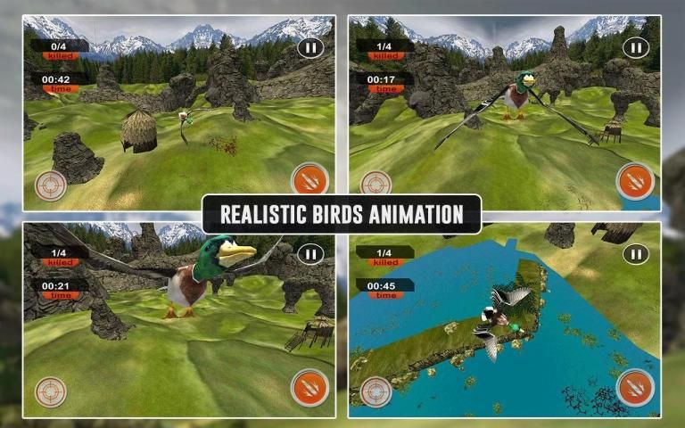 Развивайте свои навыки охоты, как птицы охотник, сбив как много уток, как это возможно.