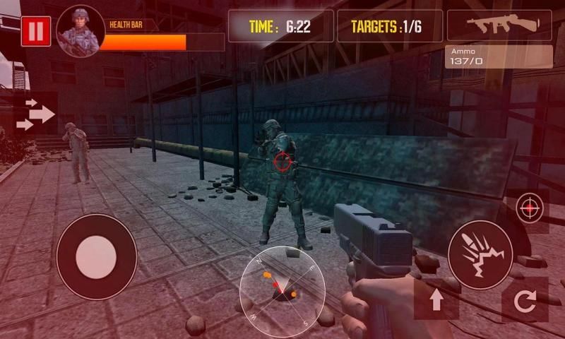 Террористы будут готовы контратаковать и нанести ответный удар, поэтому будьте начеку все время. Враги оснащены оружием и пушками, как снайперские винтовки ружье, пистолет и пулеметы, но что им не хватает навыков, которые только у вас есть. Стреляй, как военный шутер, бороться, чтобы выжить в этом шутер бою. Вся эта игра о снайперских миссиях, смертельных миссиях, счетчик террористы снайперских ударных задачах. Тщательно гонка на время, чтобы драться с террористами, использование современного оружия поможет вам дать им смертельный удар.