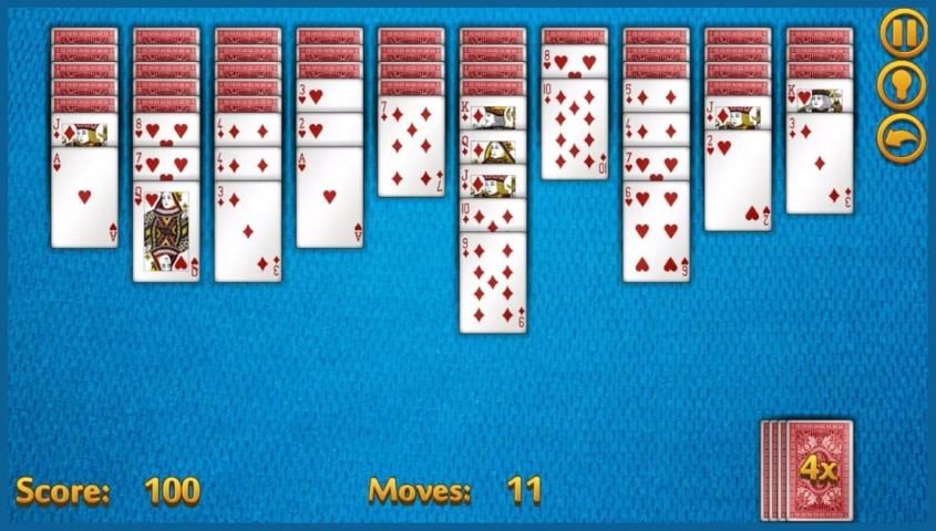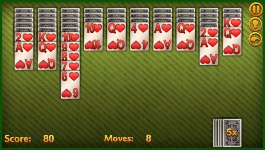 Раскладывай карты по стопкам, от короля до туза. Стопка карт должны состоять из одной масти.