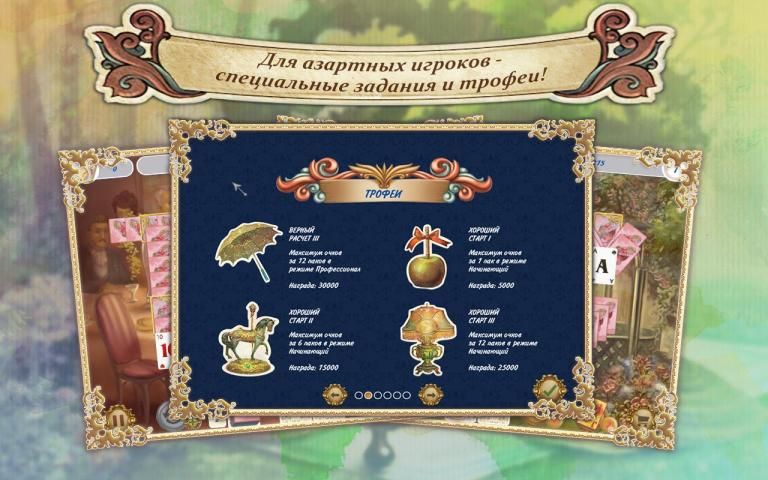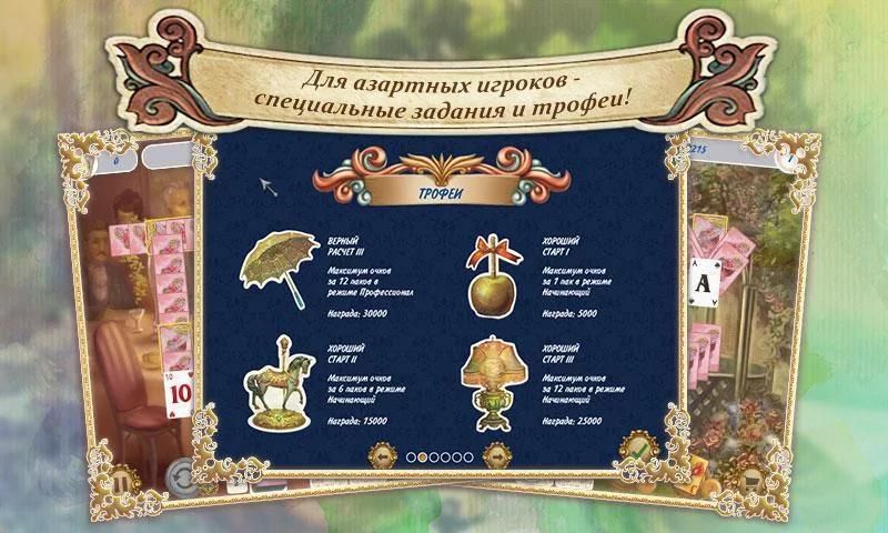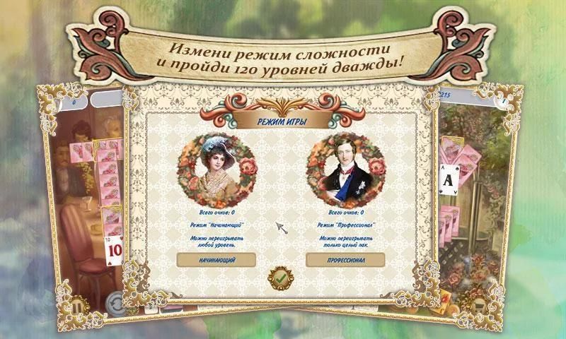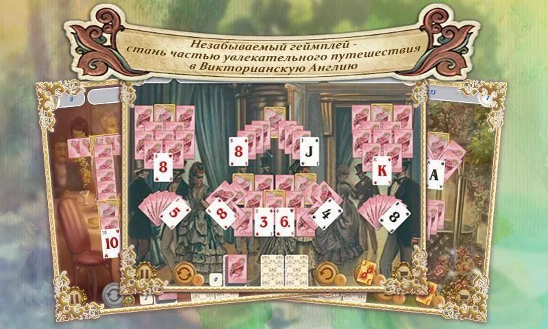Добро пожаловать в восхитительную Англию! Классический пасьянс дополнен оригинальной игровой механикой и понравится как ценителям традиционных карточных раскладов солитер, так любителям необычных пасьянсов. Собирай пары карт как можно быстрее, и специальный множитель увеличит твою награду! Покупай полезные бонусы: джокер, отмена действия и перемешивание. Графика премиям-уровня, яркие уровни и классическая музыка перенесут тебя на праздник жизни — в Викторианскую эпоху.
