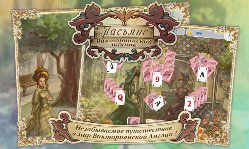 Вернитесь в Викторианскую эпоху вместе с игрой Пасьянс Викторианский Пикник. Прогуливайтесь по прекрасным паркам, посетите балл маскарад, выпейте чаю со знатными леди и джентльменами и совершите незабываемое путешествие по замечательным местам Викторианской эпохи. Легендарное время и 120 новых карточных раскладов!