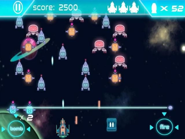 - Контролировать свой космический корабль, перемещая ваше мобильное устройство.