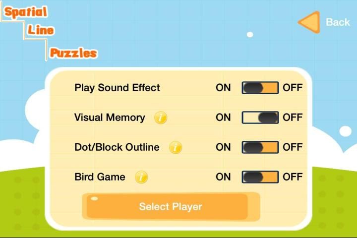 Заполните головоломки, копирование строки в пустом поле. Анализируя положение точек или блоков, и определение, как линии связаны друг с другом, Пространственное навыки усилены. Для дополнительной стимуляции навыков зрительной памяти, головоломка исчезнет после выбранного периода времени, если эта опция включена в настройках.