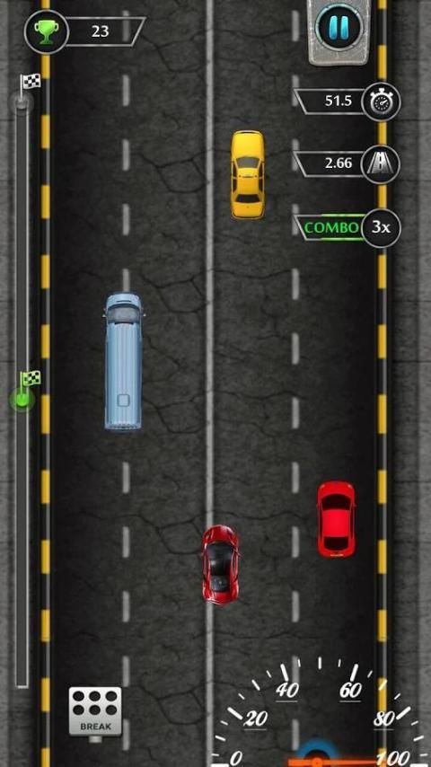 -Combo особенность, Combo означает, что вы перегнать машину вы получаете одно очко, если у вас есть комбо, чем точка умножить на комбо.