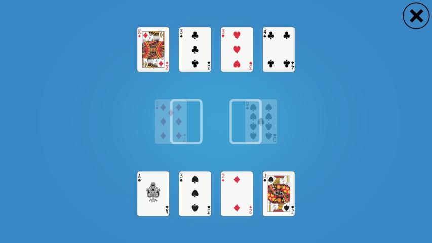 Например, если карта в середине находится 5, можно поместить либо 4 или 6.