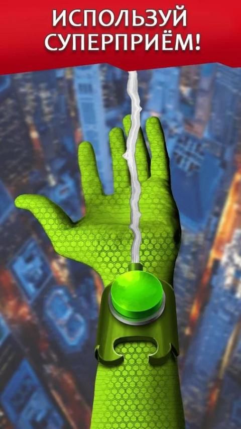 Преврати свой телефон в руку, которая пускает паутину и стань супергероем. В вашем распоряжении три костюма которые вы можете использовать.
