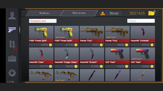 В игре можно открывать кейсы, покупать и продавать оружие, а также заключать контракты, обменивая старое оружие на новое.