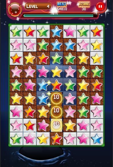 Получить точку путем стирания Star. Вы можете сделать длинную цепочку Star, чтобы получить больше очков!