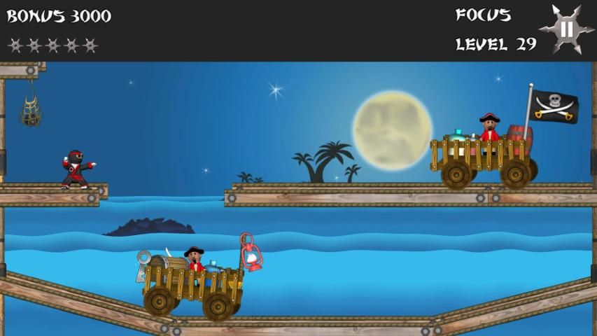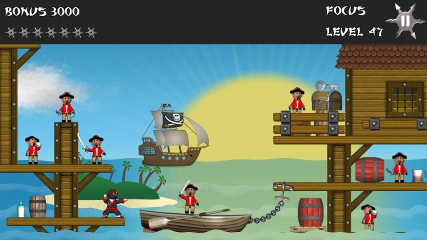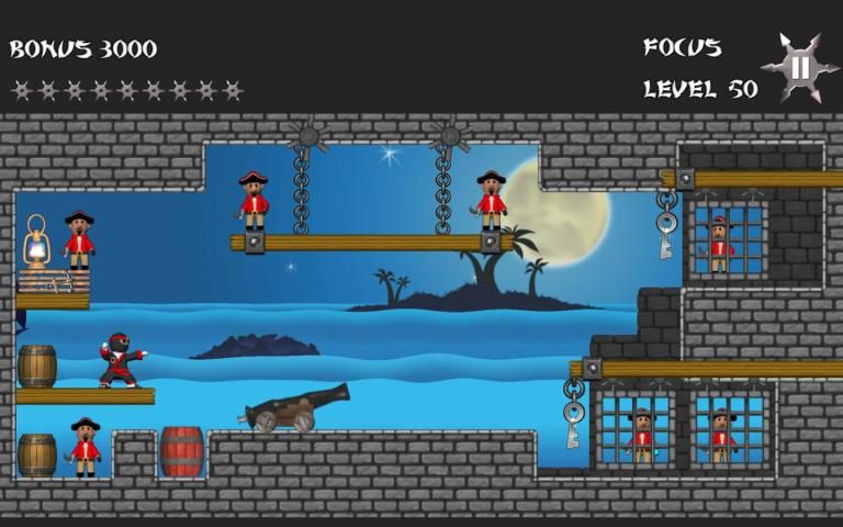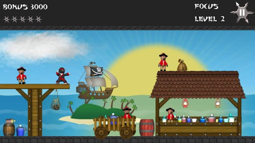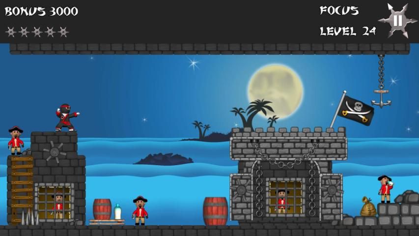 Звезда Ninja является рикошета игра, где вы отказов бросали звезды, чтобы выбить из всех пиратов, чтобы перейти к следующему уровню. Хороший семейный дружественный весело провести время с 50 уровнями мило анимации, отличная музыка, физика тряпичной куклы и огромное количество забавных пиратских стеб.