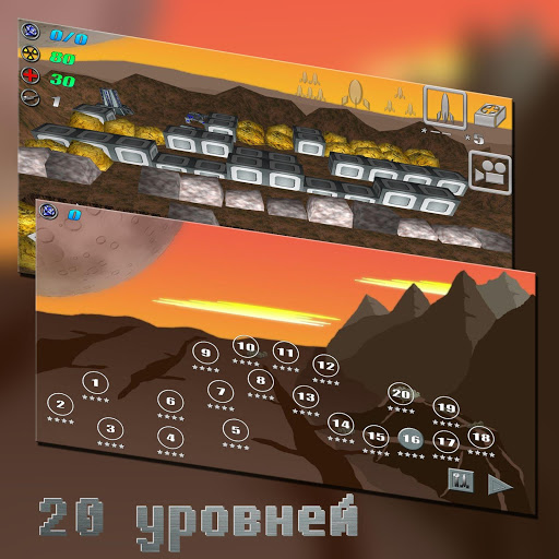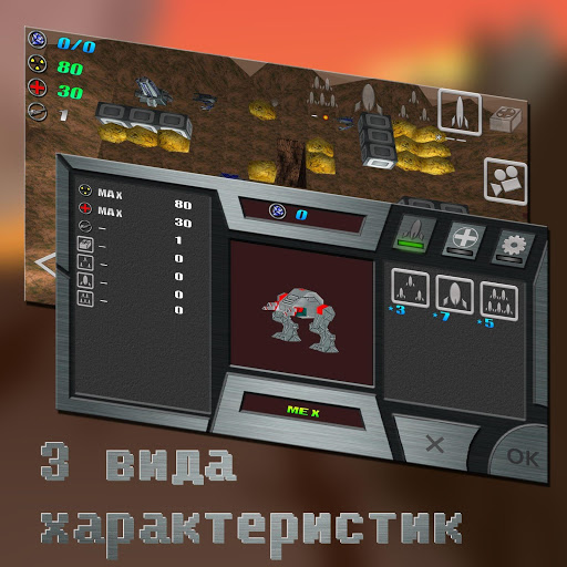 Другая планета. Ваш робот-мех должен уничтожить вражеских роботов-мехов а так-же вражеские генераторы (если они есть на уровне) и защищать свои генераторы(если они есть на уровне). Главный ресурс на планете - кристаллы (выпадают из скал и врагов). За кристаллы улучшаем робота-меха и покупаем оружие. Одна из главных особенностей робота-меха - мощность реактора. Реактор греется при каждом выстреле (чем мощнее орудие тем сильнее греется), выстрел из двух стволов нагрузка в 2 раза сильнее. Движение робота-меха тоже греет реактор и попадание вражеского снаряда. Нужно следить за уровнем нагрева реактора и дать роботу-меху остыть (постоять). Те-же проблемы есть и у вражеских роботов-мехов (легкие роботы-мехи быстро бегают, не больно стреляют и быстро охлаждаются и наоборот). За каждый уровень начисляются звезды(от 1 до 4) в зависимости от полученных кристаллов. 3-4 звезды - открывается вход на следующий уровень. Так-же в зависимости от количества звезд дается бонус. За первый уровень бонуса нет так-как он разминочный-тренировочный.