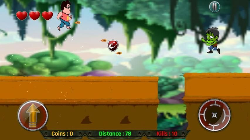 Стивен против зомби является на основе приключенческая игра в стиле, он отправляется в путешествие во вселенной, чтобы собрать монеты и избегать врагов через бесконечные приключения через уровни.