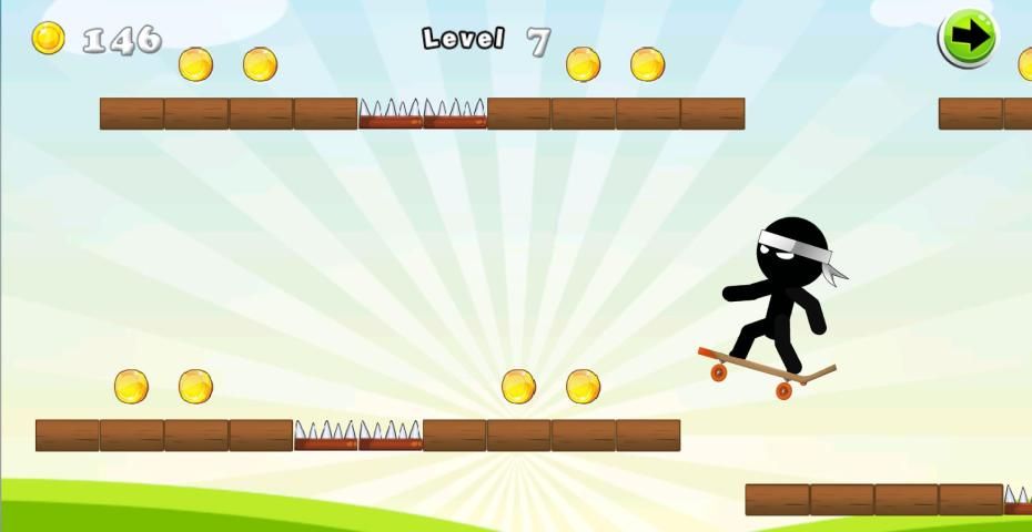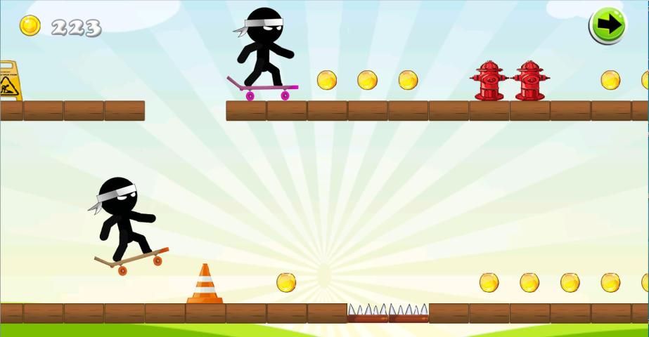 "Stickman Скейтборд" это приключенческая игра В этой игре вы должны помочь Stickman, чтобы избежать препятствий, преодолеть опасности Просто нажмите на экран в нужное время, чтобы прыгать и избегать препятствий, собирая как можно больше монет, как вы можете набрать высокие между вашими друзьями ,