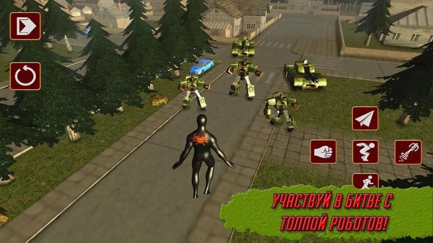 Город был уничтожен необычным футуристическим роботом! Казалось-бы, ничто не сможет его остановить! Но тут на помощь приходит x-герой мутант! Его зовут герой паук, и он хочет победить необычного футуристического робота! Вы должны помочь этому герою! Ему ничто не помешает это сделать!