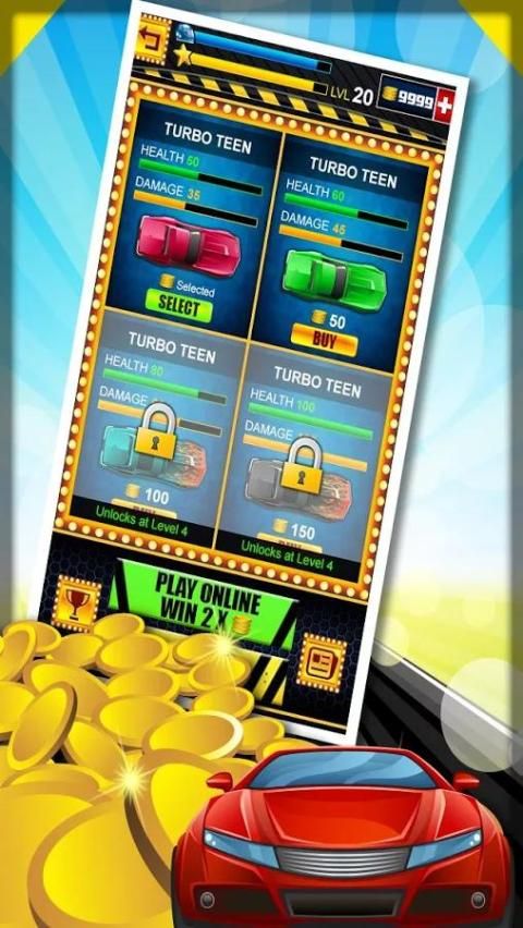 Street Racing Slots is one of the best racing games. Have fun dodging cars and destroying your rival cars while you speed up to the limit. Race against the Super Cars in an outstanding Racing Face-Off and try to win the Prestige race. Equip your car with pliers, wrench and sling shot. Make your own customized armored car to fire on the way!