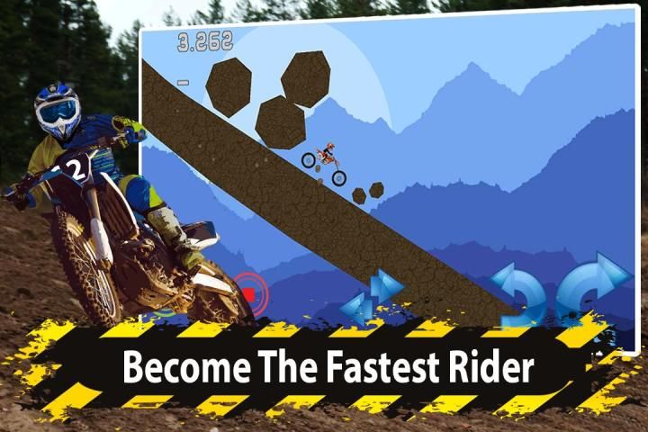 Эта холмистая среда подходит, чтобы проверить ваши навыки вождения. Не врезайтесь в камни и не падайте. Кнопки управления дают ощущение реального вождения мотоцикла. Покажите свои навыки и играйте на холмах и грунтовых дорогах.