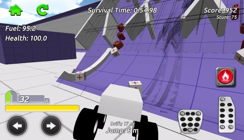 Перейти в любом месте вы хотите в песочнице арене при сборе топлива и здоровья пикапы, чтобы сохранить ваш грузовик собирается, ваше топливо всегда бежала так найти столько, сколько вы можете. Пикапы скрыты везде вокруг арены, взять на препятствия и проблемы игр, включая футбол и боулинг, как вы пытаетесь найти их все! Заработайте счет трюк как вы ездите вокруг, выполняя прыжки и заносы.