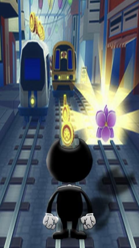 Метро Бенди Run игра чернил машина полностью одна из самых больших машин игры Бенди чернил когда-либо сделанных на Google Play, полные радости и развлечений, вы получите пристрастился к нему .Это как раз просто и удивительно все, что вам нужно сделать, это нажав экран и наш Бенди машина серферы чернил метро будут прыгать, чтобы избежать борьбы и попытаться собрать чернила с помощью других друзей.