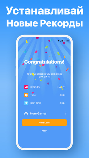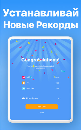 Выберите любую сложность, которая вам нравится. Играйте в легкие уровни, чтобы пробудить свой мозг, или попробуйте уровни эксперта, чтобы дать вашему мозгу настоящую тренировку.