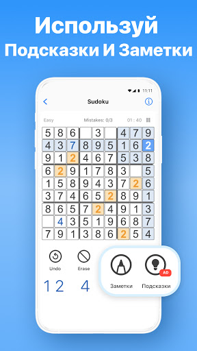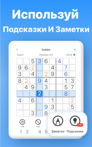 - Делайте заметки и отслеживайте возможные ходы. Каждый раз, когда вы заполняете ячейку, ваши заметки автоматически обновляются!