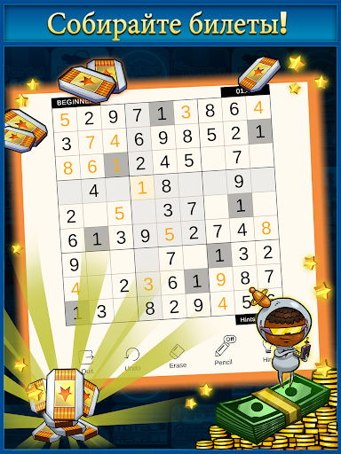 Итак, чего же вы ждёте? Загрузите «Sudoku» прямо сейчас, чтобы получить доступ к ещё большему количеству потрясающих игр и денежных призов, причём совершенно БЕСПЛАТНО! С помощью «Sudoku» любой может заработать деньги, просто играя в бесплатные игры — дома, на автобусной остановке, в метро, в общественном транспорте и т. п. Играйте ГДЕ УГОДНО!