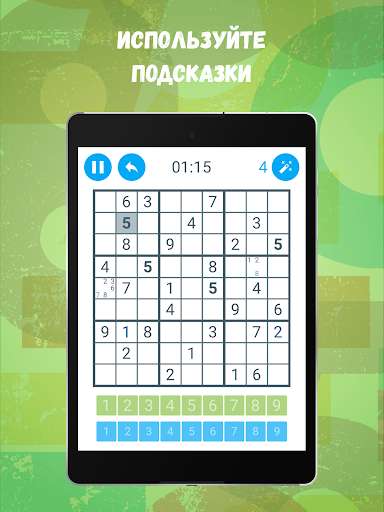 - удобный интерфейс двух раздельных клавиатур позволяет одновременно вводить значения в ячейки поля и ставить свои заметки, которые помогут решить сложные головоломки данной игры;