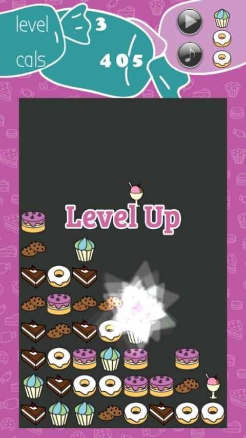 Перестановка обсахаренных угощений в линию из трех или более одинаковых элементов, чтобы очистить эти калории. Бонус лечит доступны на протяжении всей игры, что дает вам больше возможностей, чтобы увеличить ваш счет калорийности.
