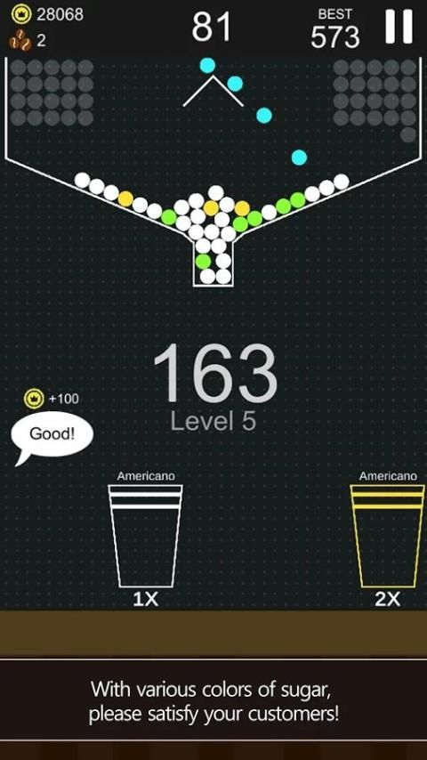 - При нажатии на экран, сахар будет падать сверху.