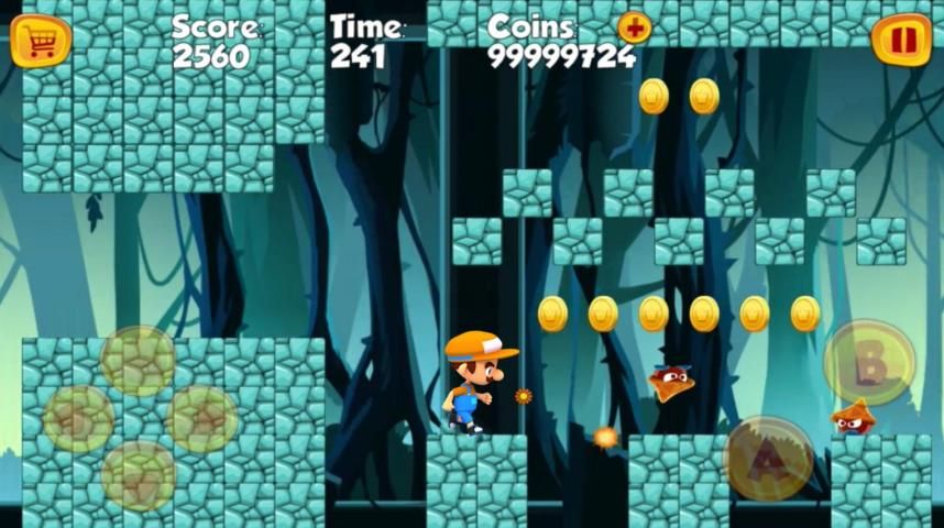 Используйте на экране виртуального контроллера для управления Супер Adventure World . Вы можете бегать, прыгать и бороться с большим количеством врагов.