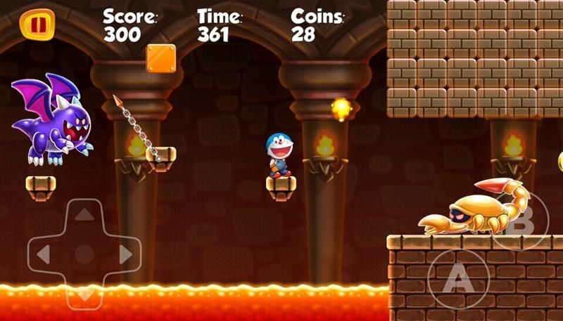 помочь doremon мальчик игра Cat, чтобы победить врагов shootting огня и прыгать через них, старайтесь не трогать врагов, чтобы не получить проиграть игру