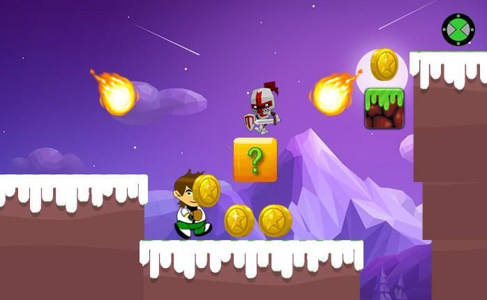В джунглях тепла, Бен должен пройти так много угроз для запуска целевого мира. может прыгать, бегать и может использовать Omnitrix убить монстра, но оружие спрятано в где-то на джунгли, чтобы убить всех врагов на пути так играть с Беном.