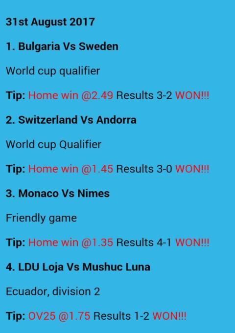 Супер Bet Master предлагает бесплатные советы на ежедневной основе. У нас есть условия для крупных лучших бесплатных игр плюс 2 + шансы разделов. Вы также можете присоединиться к нашей телеграмме канал, где мы обновляем наши члены на предстоящих играх и VIP советы, когда вы подписываетесь на разделе, посвященном. С нами вы можете создать большие шансы на победу в наших VIP-билетов, предоставляемых ежедневно.