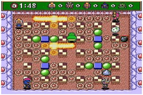 This game scales back a lot of gameplay additions made in Super Bomberman 2 and returns to the classic formula. As for multiplayer, the game adds a lot over the previous game by adding more characters, each representing a country of Earth. There are also new cutscenes for the Story mode, which centers around the resurrection of the Five Dastardly Bombers who were previously defeated in Super Bomberman 2, as White Bomber and Black Bomber adventure across various element themed stars in which the Five are causing havoc, under the rule of their creator, Bagular. A button = Pick up bomb on the ground and throw it away. B button = explode bomb [If you have remote bomb]. Y button = Throw bomb, Rabbit's move.