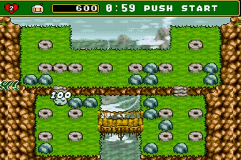 Super Bomberman 4 is an action game in which players lay bombs to destroy enemies or other bombermen. Other than laying bombs, the game includes a number of power-ups, which allows players to increase the range of a bomb's explosion, punch or kick bombs already on the ground, or pick them up and throw them at another player. The explosions of the bombs can harm anyone on the field, including the bombermen who left the bomb in the first place. There are two game modes, Normal Game (the campaign, which can be played with two players), and the Battle Game, which has three separate modes. A : Place A Bomb, throw bombs (with glove power-up). B : Detonate Remote Bombs. Y : Punch A Bomb (with boxing glove power-up), some creaturn bilities.