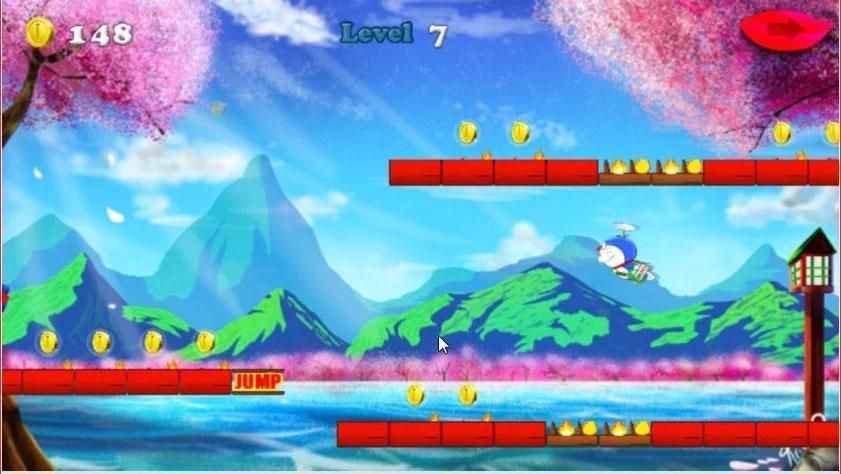 Помочь Doraemon игры Cat мальчика, чтобы победить врагов, стреляя в огонь и прыгать через них, старайтесь не прикасаться к врагам, чтобы не потерять игру
