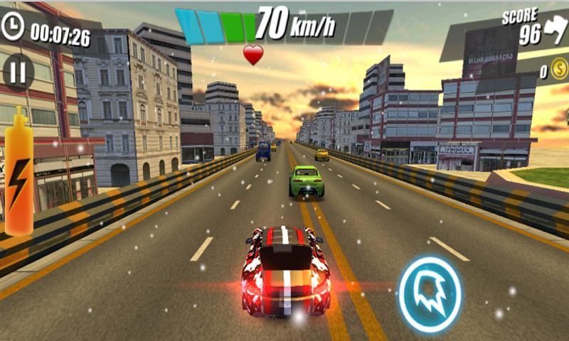 -Tap левую сторону экрана, чтобы замедлить для избежания автомобиля давит