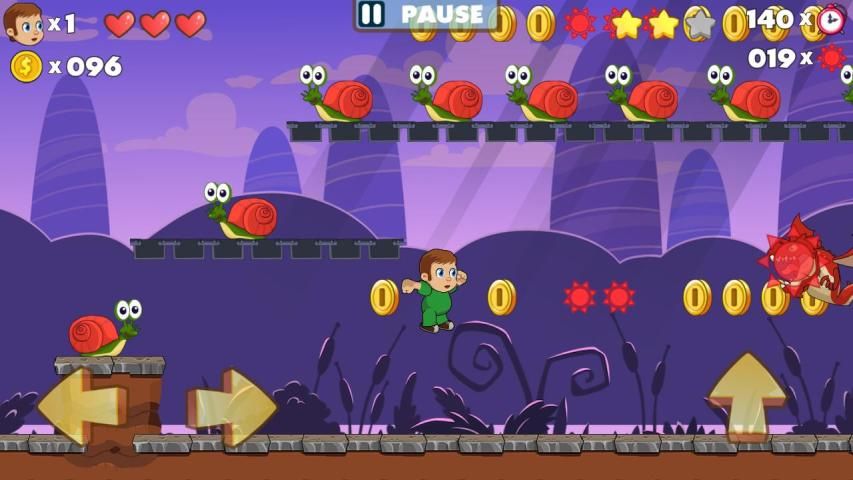 Были все виды монстров с большим количеством сокровищ. Прекрасные волосы шарики, колючий монстр, призрак не может быть убить, шлемы полет монстра, тыквы с магмой, и так далее. Бегать, прыгать и исследовать аркад. Пройдите через джунгли, снежные горы, пустыни и т.д. Собирайте монеты, золото. Победить монстра, добраться до места назначения, возьмите свой родной город обратно и восстановить его гармоничный мир снова.
