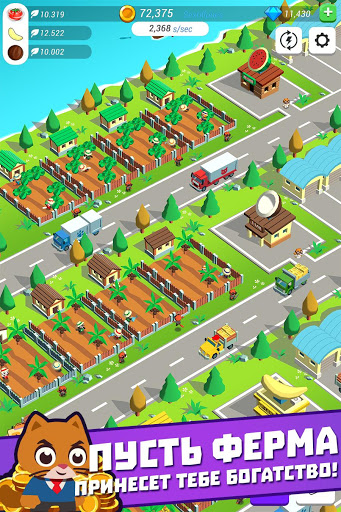 🚜 Построй ферму, выращивай фрукты и поставляй лучшую продукцию своим пушистым друзьям. Вкладывай средства в кошачью науку, чтобы открывать новые, невероятные фрукты, которые произведут революцию в мире и увеличат твою прибыль.