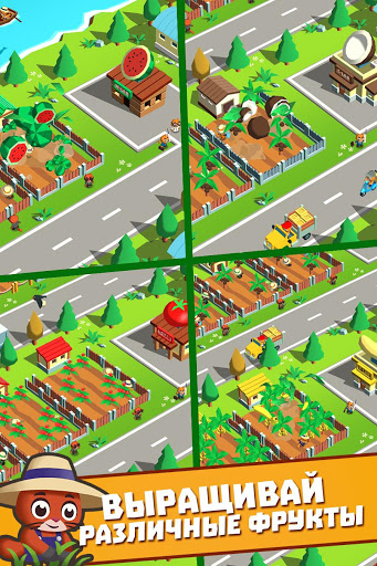 Разумно выделяй средства на приобретение растений и транспорта, чтобы выращивать лучшие фрукты в мире. Смело совершенствуй и перестраивай свою ферму, начинай все с нуля с учетом своего нового опыта. Твоя ферма будет расти быстрее, а ты получишь доступ к новым исследованиям 🔬.