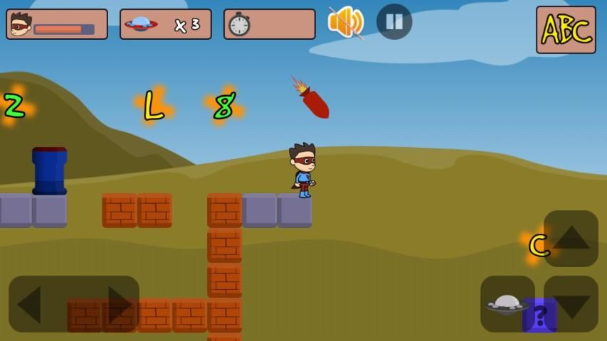 Супер герой в этой игре будет собирать буквы, цифры и многие другие задачи, преодолевая препятствия и победить врагов. Всякий раз, когда супергерой спасенных письмо или номер и многое другое, то система будет издавать звуки для детей практиковать сразу.
