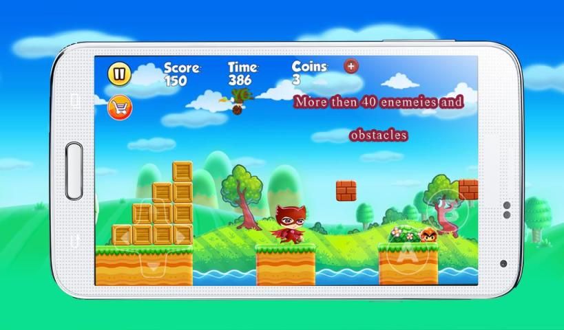 супер дети маски мир приключений игра эпическая игра, чтобы играть. Прийти на помощь Pj-маску, чтобы пройти все уровни, собирая монеты / суперспособности и избегая препятствий, это очень весело и захватывающая игра мини аркада / приключения .avoid падающих кирпичей и борьбы с perhistoric врагов.