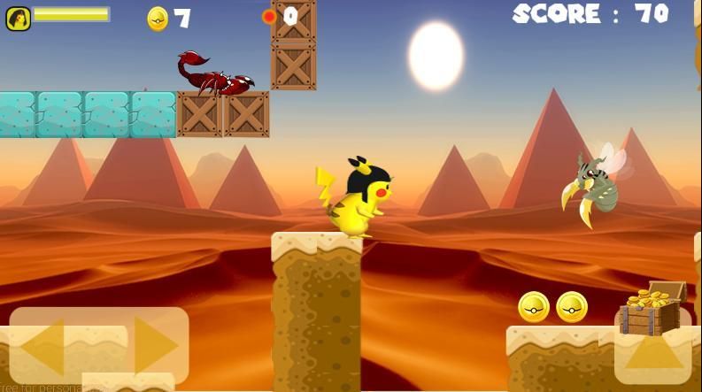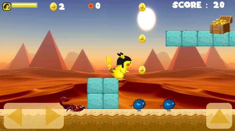 Супер PIKACHU Фараон Приключение ID лучшее приключенческая игра, полная плавность хода и прыжки, чтобы собирать монеты и камни, проходя по всей пустыне,