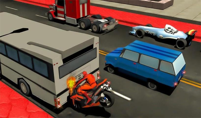 Особенности Super Spider Bike Flash Speed Traffic Racing Hero Игра: