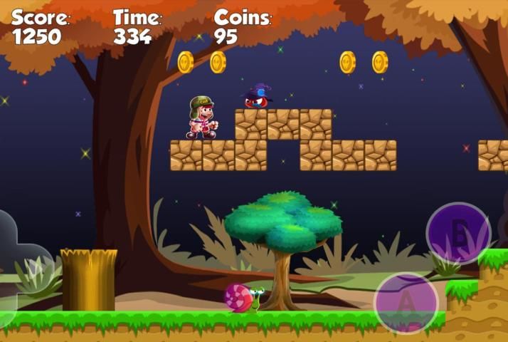 Кнопки управления для запуска, прыгать блоки и исследовать аркад. Путешествие по опасным джунглям, пустыни, машина базы и т.д. Собирайте монеты, золото, ускорение реквизита, чтобы помочь вам победить монстр!
