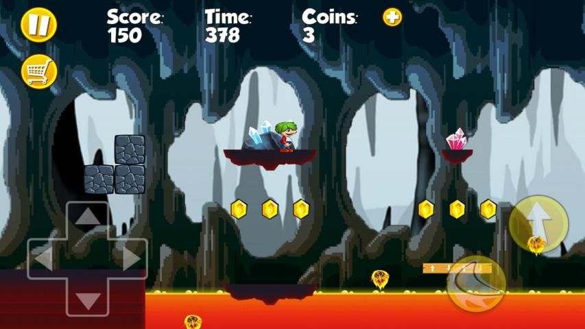 Бегать, прыгать и исследовать аркад. Путешествие по опасному лесу, вулкан, пустыни, болота, машинного отделения, замок и т.д. Собирайте монеты, золото, молотки, чтобы помочь вам победить монстра, призрак, зомби!